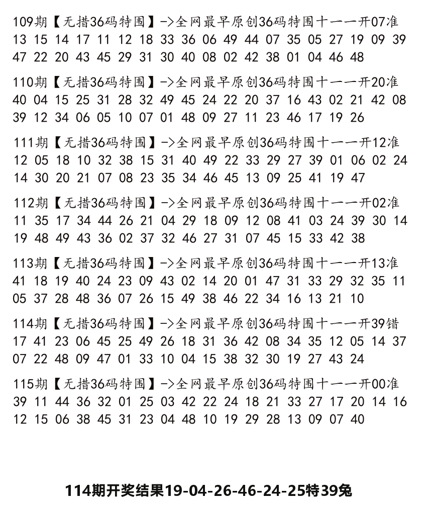 上一期:2025年114期:36码特围